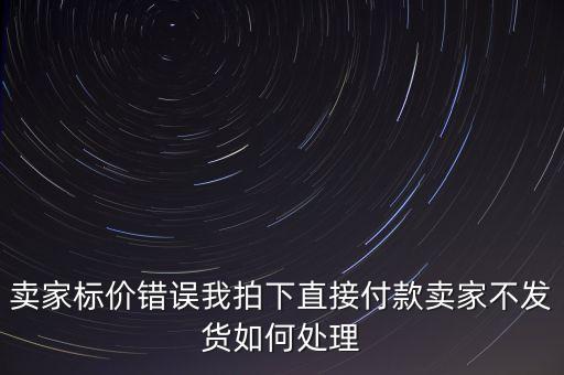 賣家標價錯誤我拍下直接付款賣家不發貨如何處理按照法律上來解釋,賣家給你退款結束交易了事.這個不會因為賣家標錯了價格你拍下了...[詳細]